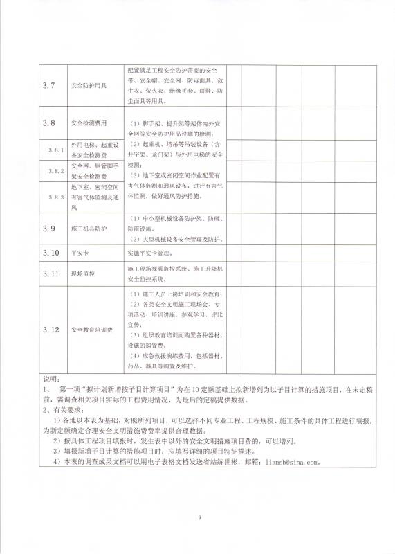 關于調查安全文明施工措施項目費費率的函