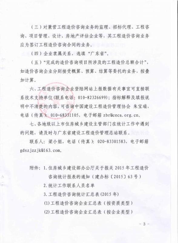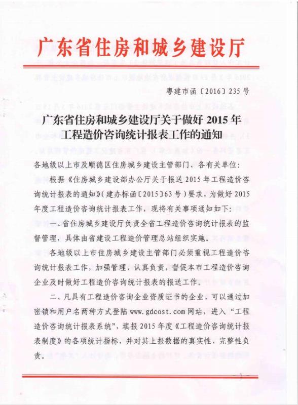 《廣東省住房和城鄉(xiāng)建設廳關于做好2015年工程造價咨詢統(tǒng)計報表工作的通知》