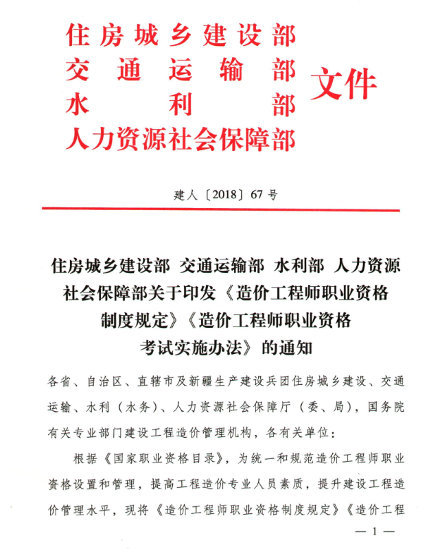 建人[2018]67號(hào) 關(guān)于印發(fā)《造價(jià)工程師職業(yè)資格制度規(guī)定》《造價(jià)工程師職業(yè)資格考試實(shí)施辦法》的通知.pdf